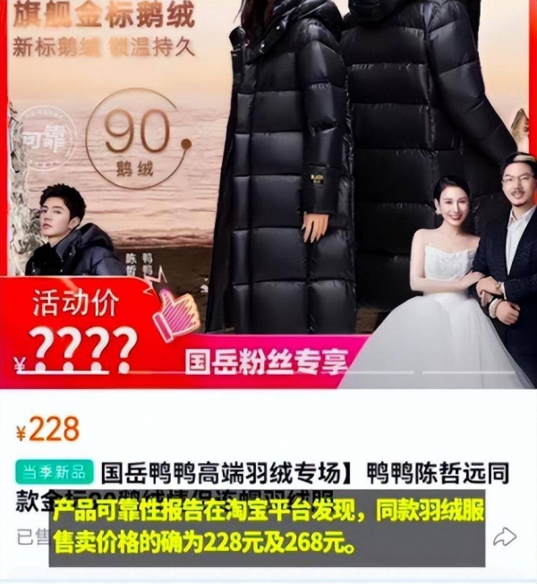 消费者张先生投诉称,贾乃亮带货的鸭鸭羽绒服在淘宝店铺售卖价格为228元到268元不等,贾乃亮这种行为是妥妥的割粉丝韭菜。