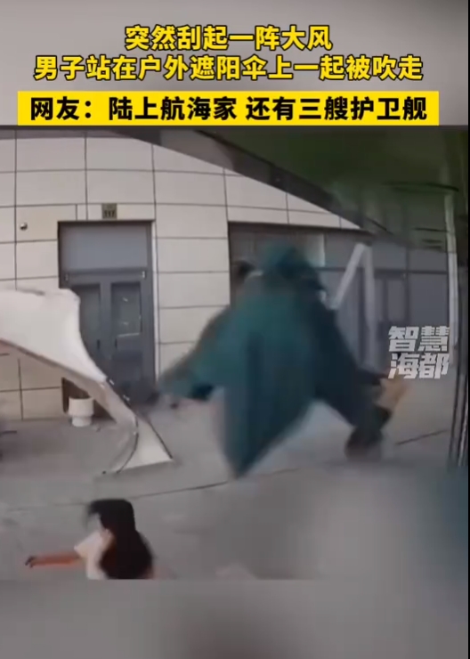 山东:突然刮大风 男子站户外遮阳伞上一起被吹走,场面惊呆众人! 2024-06-08 10:23 搜狐 5月30日,广州。大风天男子收遮阳伞,想用自身力量拽住它,结果没想到连人带伞一起被吹走。 网友:陆上航海家,还有三艘护卫舰! 还有网友担心道:"太危险了,希望人没事"、"大风天真的要关好门窗,不要随意出门啊!"。