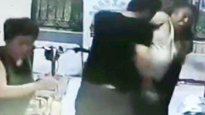 随后爆发兽欲,将老板娘侵犯,事后还朝老板娘脸上打了两耳光,说着是你导致我被爷爷打,我现在还你双倍!