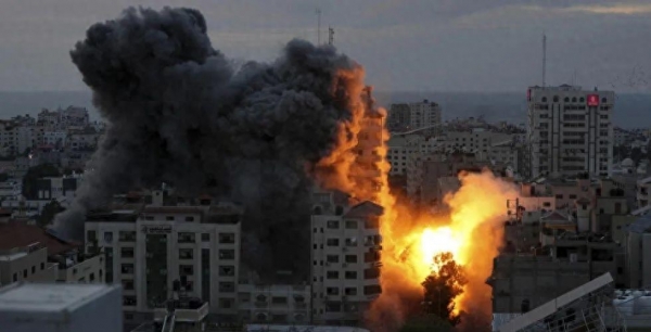 炸向加沙地带无辜平民的建筑物上,这是以色列国防军对加沙人民犯下的又一罪行。以色列空军甚至连周边国家也一起轰炸。