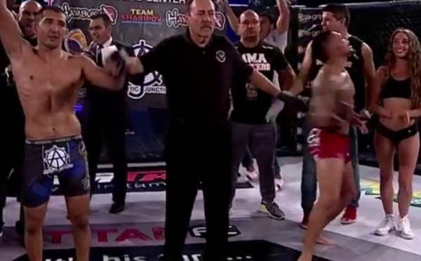 在MMA惠尼VS沙里波夫的比赛中,惠尼有十足的把握以为自己会赢,所以十分兴奋,但最终却是沙里泼夫获胜,最终恼羞成怒的惠尼直接在拳击台上挥拳发泄,最终导致后排的举牌女郎受了伤。