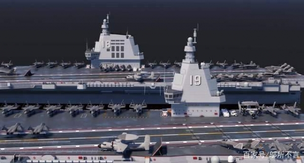 其次,"福建舰"官宣采用了平直通长飞行甲板,和美国现役核动力航母设计类似,这也是大型航母的标志性设计,相比"山东舰"和"辽宁舰"的滑跃式起飞甲板,平直飞行甲板的优势是全方位的,其技术更为复杂难度更高。滑跃甲板实际上是一种权宜之计,由于缺少合适的弹射阻拦系统,舰载机只能用滑跃起飞的方式,这就限制了战机携带燃料、弹药的数量,一定程度上影响了舰载机实现完整的作战能力,而且滑跃甲板占据了一部分宝贵的甲板空间,携带的战机数量更少。