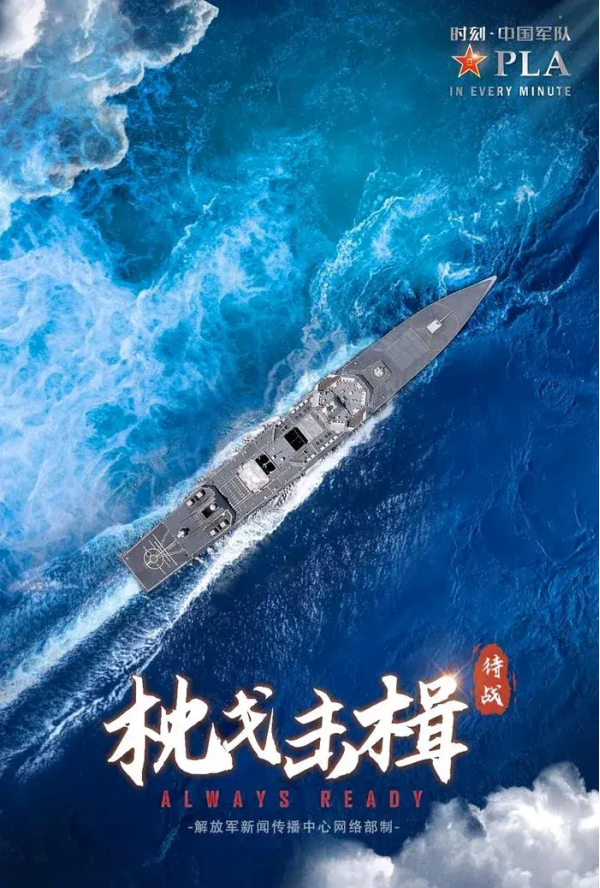 这句话是在一则名为《Always Ready·枕戈击楫》的海军双语短片中出现的,由解放军新闻传播中心网络部制作。15个字铿锵有力,释放出了强烈的信号,体现了解放军维护国家主权和领土完整、保卫中国海洋权益的决心,可以说是坚如磐石。