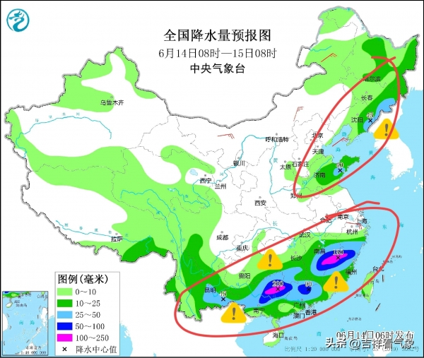 最近天气真是多变啊!咱们可得留意下天气预报,那么我们一起来看看这两天的天气情况,6月14日-15日 ,江西中东部 、浙江南部 、福建西部和北部 、湖南南部 、云南东南部 、广西中北部 、广东中北部以及吉林东部 、辽宁东北部 、山东南部等地,部分地区有大到暴雨 。最近一直下雨,雨水频繁,出行时可得小心路面湿滑。