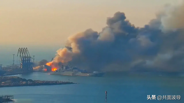 俄罗斯登陆艇被命中起火