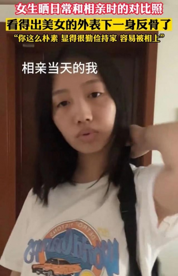 7月3日消息,女孩晒出自己的日常生活照和相亲时的照片,令人大跌眼镜。网友看后爆笑:这女孩一身反骨。