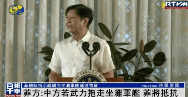 不过,菲律宾总统马科斯日前否认曾就拖走"坐滩"军舰与中国达成共识,并扬言即使有过协议,也会立即废除。