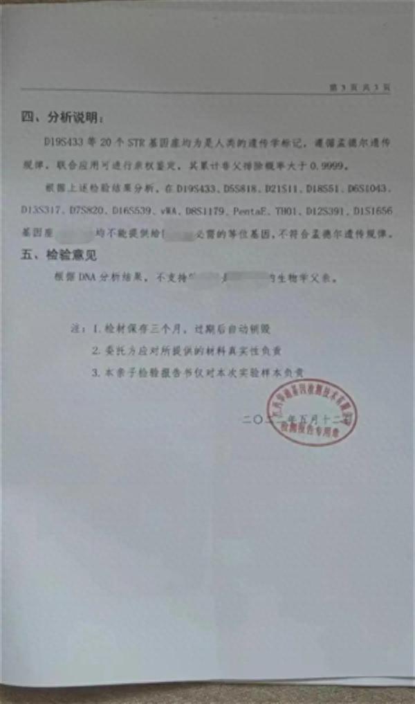 亲子鉴定结果(图源:受访者)