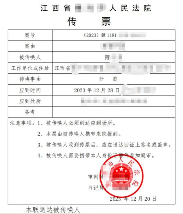 法院的传票(图源:受访者)