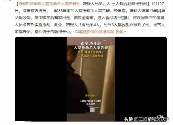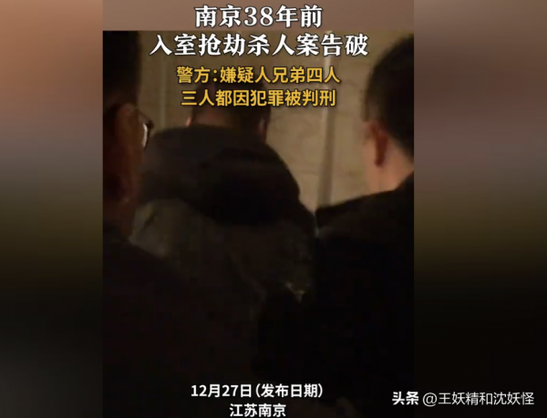 12月27日,据南京警方通报,一起38年前的入室抢劫杀人案告破。