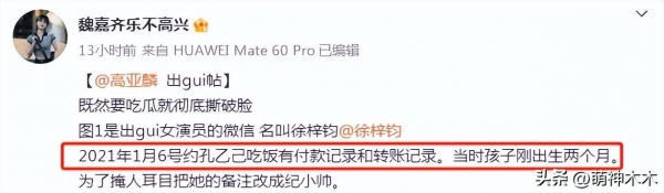 老戏骨高亚麟被魏嘉控诉孕期出轨、家暴还PUA她,女方晒出大量聊天记录和转账记录,声称要和男方鱼死网破。晚间,娱记曝光了高亚麟和魏嘉在2022年同框的画面,当时的娱记拍到了二人合体,却并没有设想到两个人当时已经有了孩子。