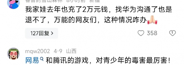 网友小康说:"我家小孩六岁,充了2000多也不给退,国家真的该管一管了,这样下去电子鸦片不知道要毒害多少祖国的花朵。"