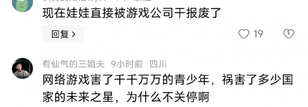 有网友愤慨,"网络游戏害了千千万万的青少年,祸害了多少国家的未来之星,为什么不关停啊!"