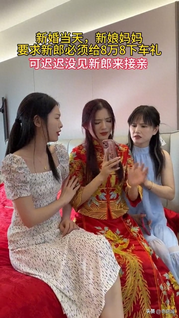 据悉这对新人在筹备婚礼期间一切都很顺利,直到婚礼当天,新娘准备登上接亲车前夕,她的父母突然改口向男方直接加价索要下车礼--从原来的1万8一下子涨到了8万8!