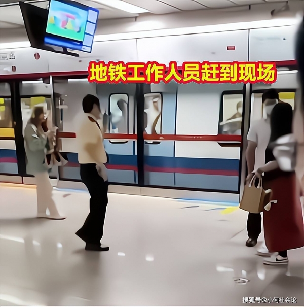 不一会儿后,车站的地铁工作人员闻声赶来,女乘客立马向对方说明情况,男子随后被警察带离了现场。