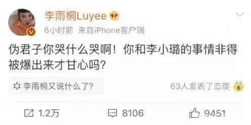 而就当大家都以为薛之谦在开玩笑时,没想到薛之谦自己也惹上大事......被李雨桐直接爆料是伪君子,言语中表明薛之谦和李小璐似乎曾经在一起过↓