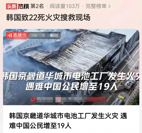 据韩国媒体报道,韩国电池厂突发严重火灾,其中有22人因为火灾遇难,其中中国遇难公民19人,引起很多国人关注,为什么遇难者中大部分都是中国人呢?