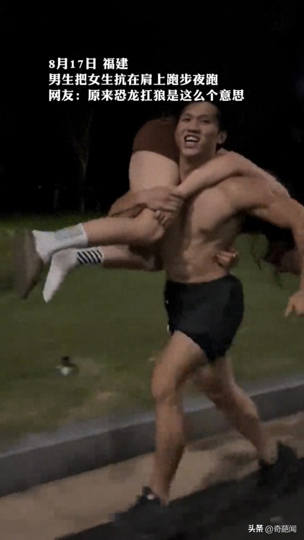 令人哭笑不得的是他还甚至还把女友的鞋子给抖掉了,但都完全没有影响到他在夜跑过程中的速度和兴致。不少网友表示:"看到这一场景,我马上放下手中的零食,决定去健身房报个名。"