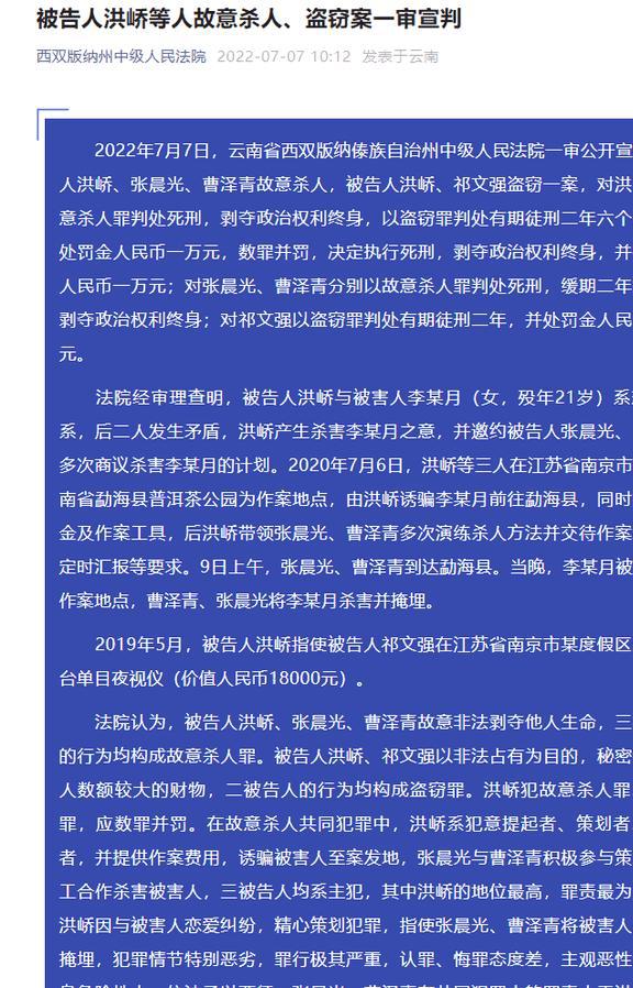 2020年7月6日,洪峤约张某月去云南游玩,女孩欣然前往。