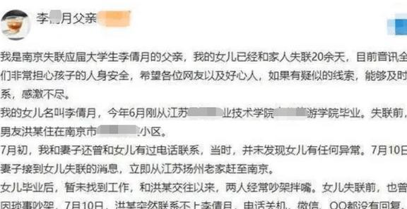 而这期间,女孩父亲几天联系不到女儿,只能四处打探,首先想到的就是女孩的男朋友洪峤。