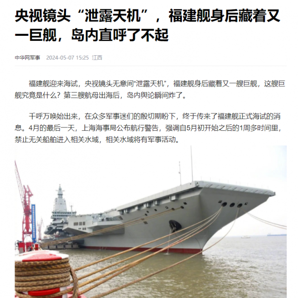 中华网军事--2024-05-07--《央视镜头"泄露天机",福建舰身后藏着又一巨舰,岛内直呼了不起》