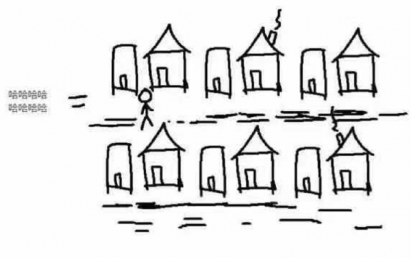这个字也是我们在聊天的过程中经常用到的"哈哈",因为使用率比较高,所以难度心情阿贵来说并不大,但是在外国人眼里却变成了两排大房子,还很仔细地在房子上安了"门",还有两个房子的房顶上矗立着烟筒,也是非常有人间烟火气了。