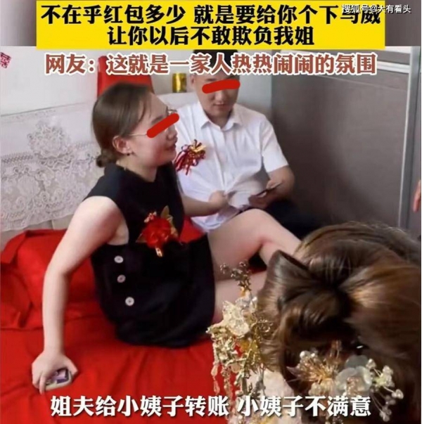 有网友说新娘的妹妹是没事找事,玩的过分,姐夫都没有红包了,还要故意刁难,转账都不行,不怕搅黄姐姐婚礼吗