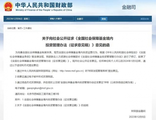 我们知道养老金的调整与社保基金的支付能力息息相关。12月,财政部发布了《全国社会保障基金境内投资管理办法(征求意见稿)》,明确提出了增加和调整全国社保基金投资范围。