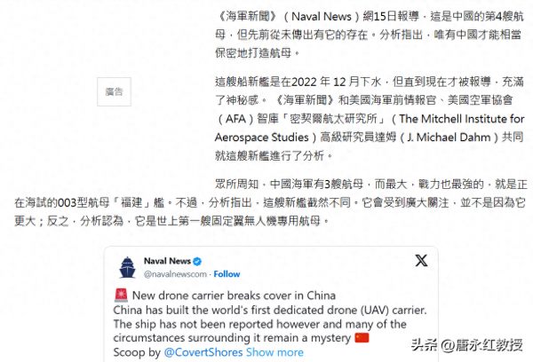 说到这或许有人要问了,既然中国已经有了076这种5万吨级航母,干嘛又要造一款"迷你"无人机航母。其实这个问题外国人也很好奇,他们推测最大的可能是,解放军舰队把它当成了演练对象。