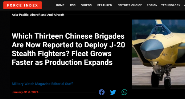 近日,长期关注中国空军建设的美国《军事观察杂志》网站发表了一篇有关中国歼-20隐身战机的文章,该文章指出目前解放军空军已经有13个旅列装了歼-20,到2030年左右将会有30个空军旅列装歼-20,而歼-20的年产量到2025年也会提升至120架。