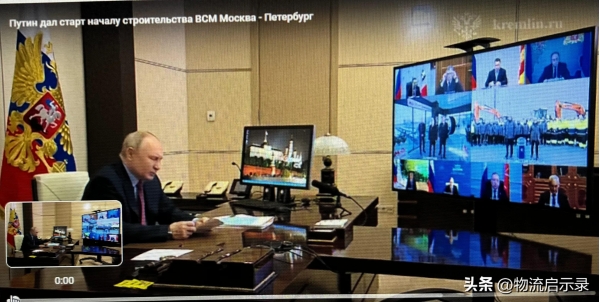 3月14日,普京通过视频参加"莫斯科-圣彼得堡"高铁开工仪式(图源网络,侵删)