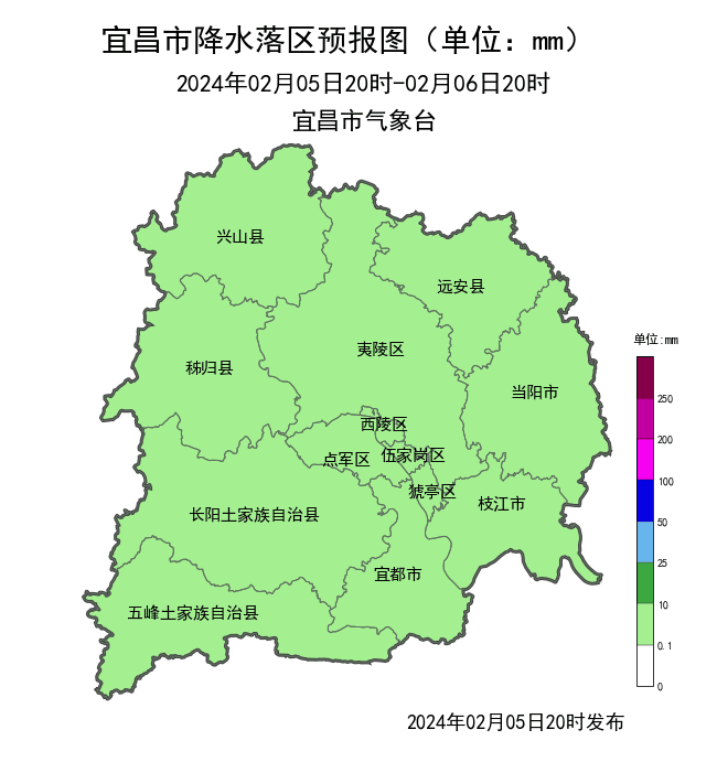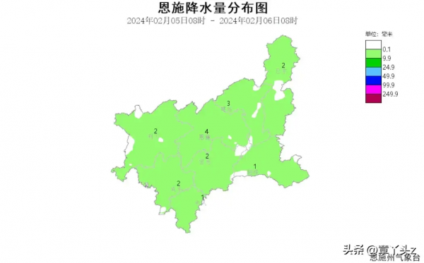 恩施气象台消息,过去 24 小时(2024 年 2 月 5 日 08 时-2 月 6 日 08 时)州内阴天有小雨雪,二高山以上有小到中雪。预计2月6 日夜间到 7 日州内大范围雨雪天气持续,强度总体偏弱,州南部相对州北部偏强,降雪时段主要集中在2月6 日夜间到 7 日上午。2月8-9日全州天气转晴,气温回升。受降雪影响,今晚到明天州内二高山及以上地区气温维持在 0℃附近及以下,积雪和道路结冰维持。