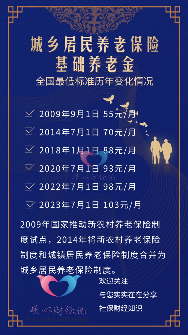 第一,居民养老保险基础养老金最低标准提升。