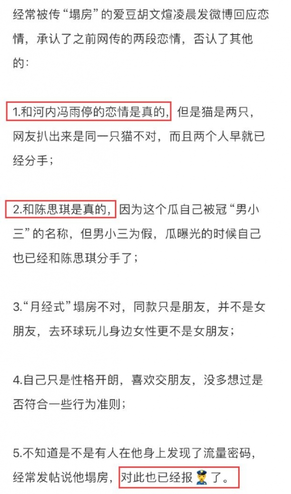 胡文煊塌房这事,当年就冲上热搜。为此胡文煊还专门回应过,承认和冯雨婷、陈思琪的恋情,但否认"月经式"塌房,对于某些造谣行为还报警处理了。