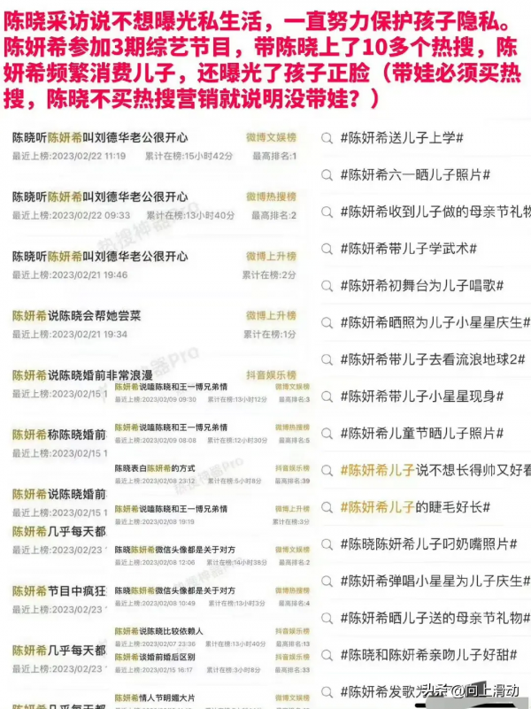 婚后,陈晓8年无缝进组,赚的片酬你都拿着,你给他买的蛋糕是翻糖的只值80,你也不舍得给他作品宣发,他的戏热搜大多数是0,但是你综艺要十几个热搜,看一次孩子要上好几次热搜,去探班要好几个热搜。