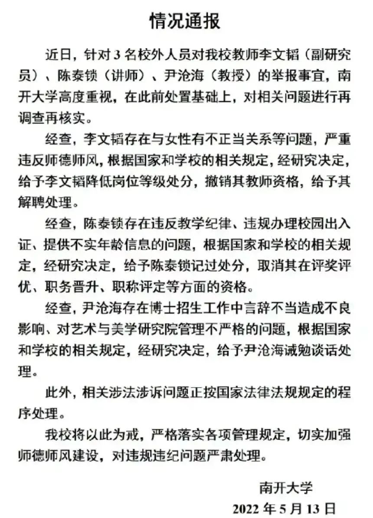 一则南开女生实名举报该校陈某"公权私用,欺瞒大众杜撰年龄,违反教育纪律,道德败坏,打击报复实名举报人..."