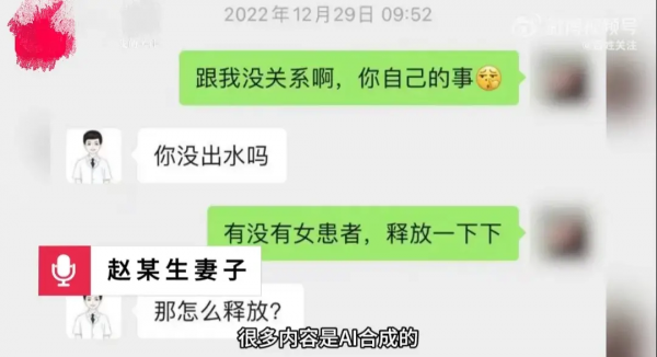 李先生透露,其女友在2022年因乳腺疾病在赵某生的医院接受治疗,出院后两人仍保持联系,聊天内容涉及私密话题,赵某生甚至邀请该女子在夜班时私会。这些指控让人震惊,但赵某生的妻子丛女士坚称聊天内容是伪造的,并表示将采取法律行动。