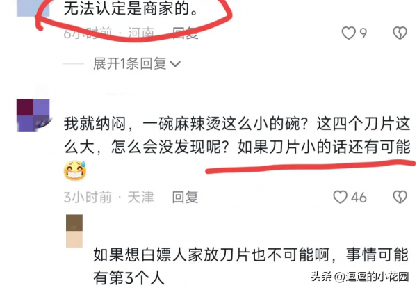 这些网友表示:那么长的刀片,吃饭的时候肯定能吃到的,怎么可能吃到最后才发现?不是故意是什么呢?