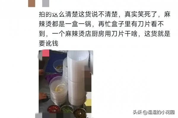 "走!现在就去!"近日,一位顾客去一家知名连锁麻辣烫店里点了份外卖。据他自己解释是麻辣烫吃到碗底的时候才发现有四个大片。