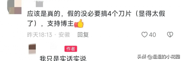 这些网友意思:顾客拍的图片并不像是假的,假的也没必要拿出四个刀片来呀?你说对不对?