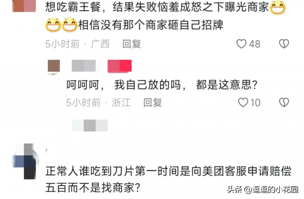 还有网友笑评:本来想吃不花钱的,结果没有吃成,恼羞成怒了,于是就有了这个故事。