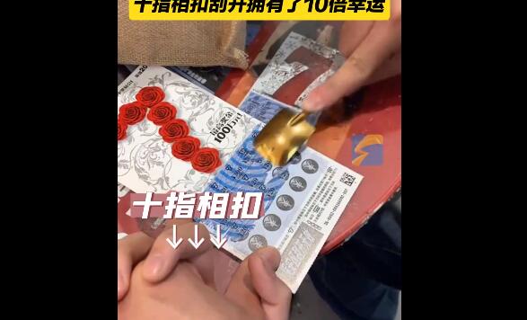 3月11日,福建福州,一对情侣购买刮刮乐中大奖,十指相扣刮开拥有了10倍幸运。