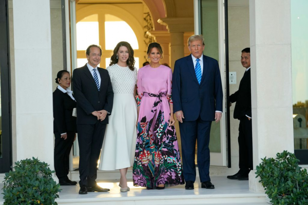 (特朗普夫妇(右)与保尔森及其伴侣(左)站在一起)