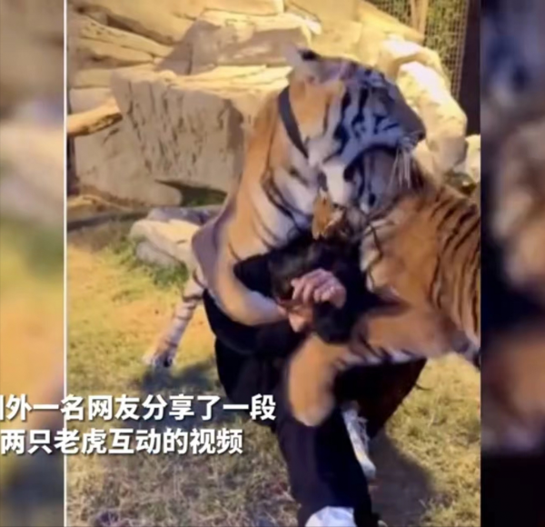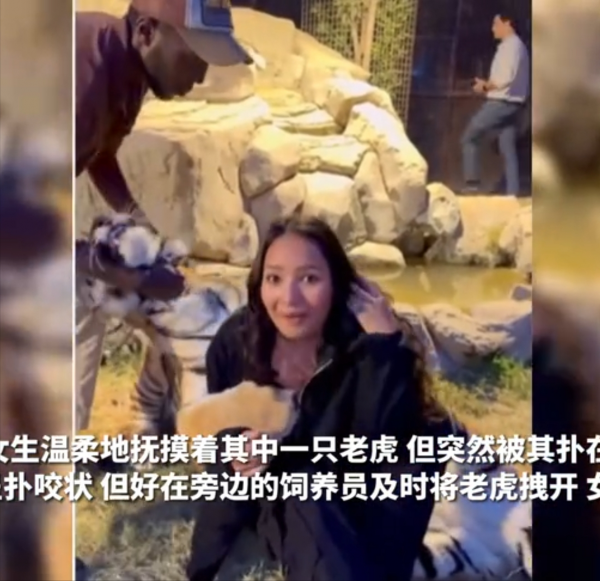 近日,一名国外女子分享了一段与两只老虎亲密互动的视频,视频中女生正在抚摸一只老虎却不料下一秒其中一只老虎突然张开血盆大口向她扑咬。幸运的是,在场的饲养员眼疾手快,及时拉住了老虎,避免了悲剧的发生。