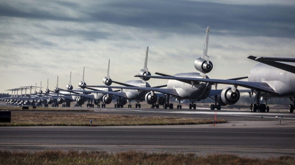另一个核心是以空中预警机、空中加油机等为代表的通勤飞机,这类飞机虽然不直接进行对敌轰炸,但几乎所有的战斗机、轰炸机的远征行动都需要有这类通勤飞机的长途伴随保障。