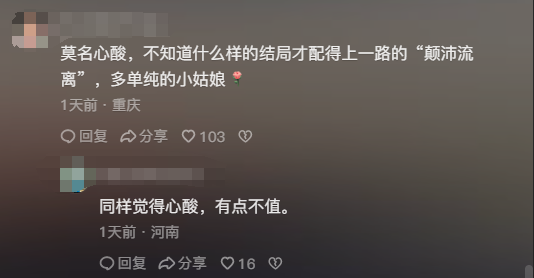 也有网友感慨:莫名心酸,不知道什么样的结局才配得上一路的"颠沛流离"