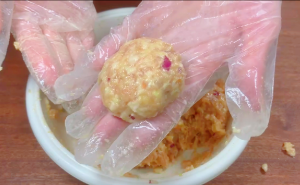 3、团丸子的时候记的多摔打一会,丸子在炸的过程中不会爆裂。