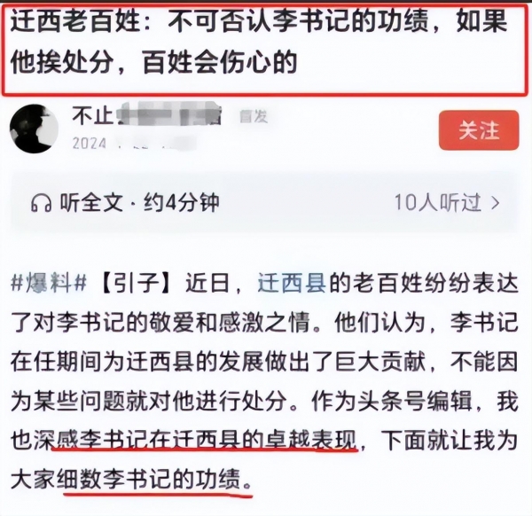 而且,网上还出现了很多文章表示对李贵福的支持,其中有些文章是迁西县老百姓写的。