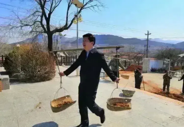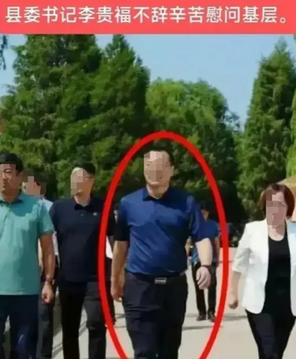 有网友还晒出了李贵福参加劳动的照片,在照片当中,我们没有看到服务的工作人员,是李贵福一个人在那里挑土,但衣服很干净,鞋子锃亮。