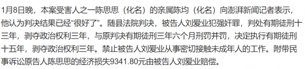 2024年1月8日,刘爱业被控犯强奸案宣判,被认定强制猥亵罪的他这次又被判犯强奸罪。